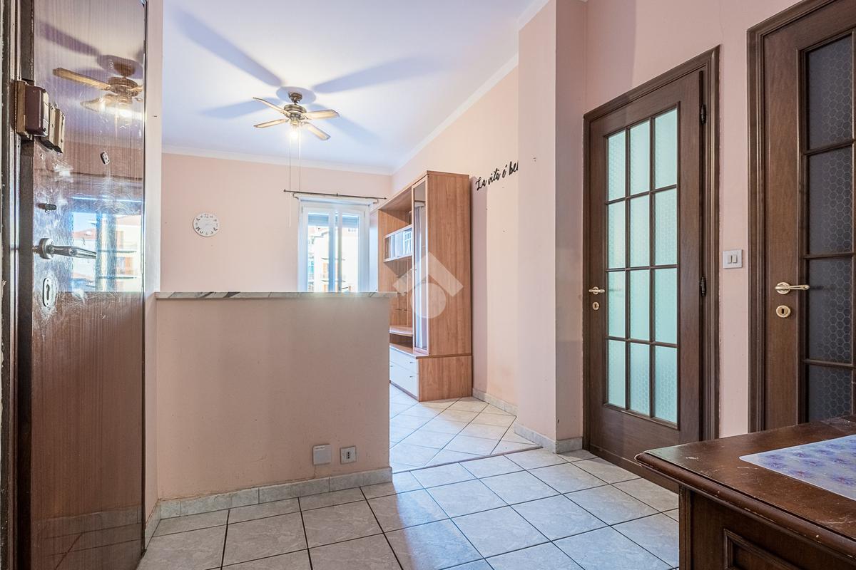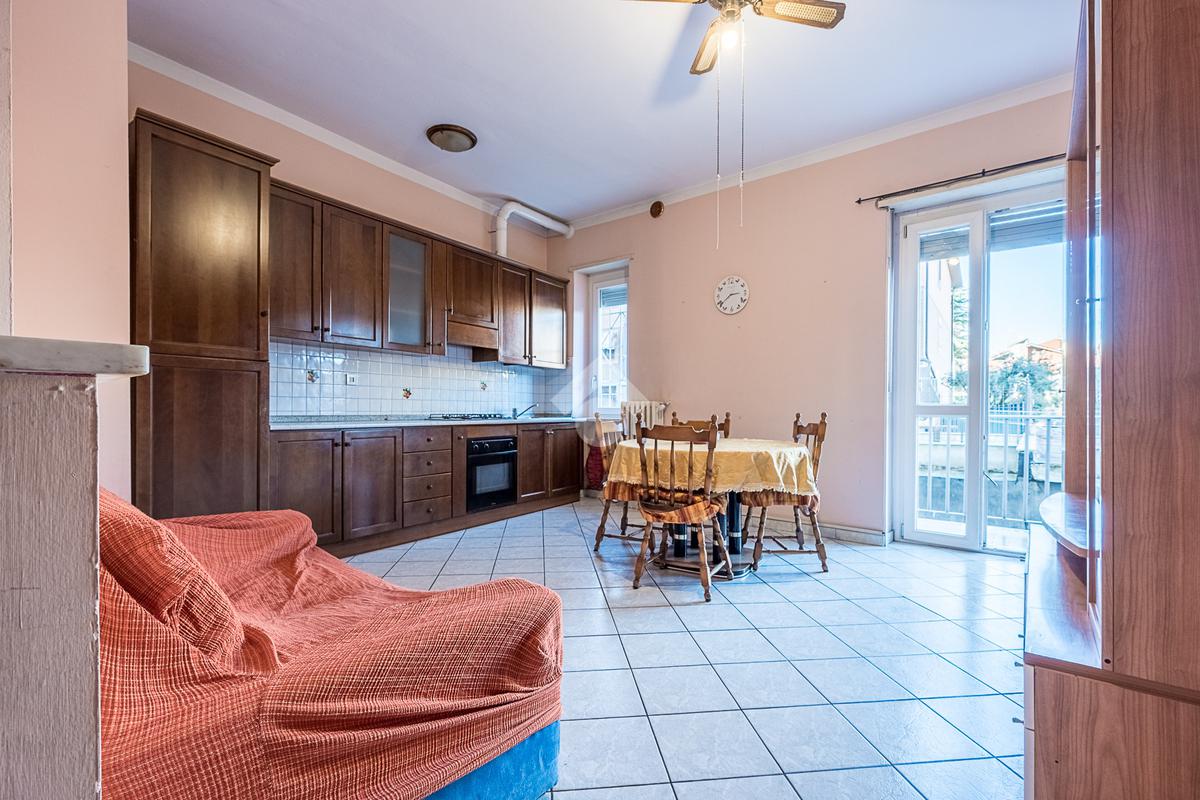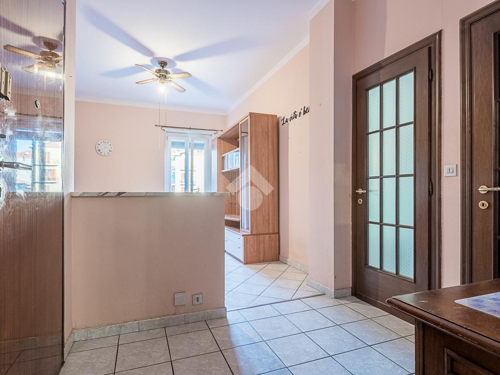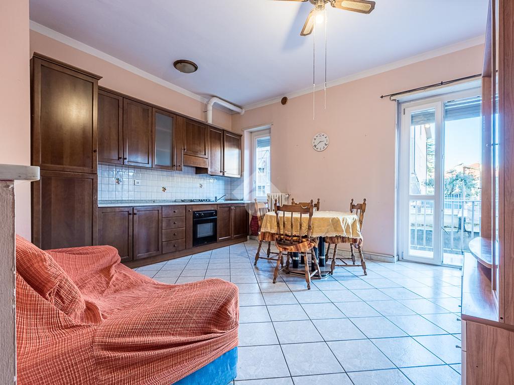 L'alloggio è composto da ingresso, salotto con cucina, camera da letto matrimoniale, bagno finestrato, ripostiglio e un balcone che affaccia sul lato cortile. L'alloggio è stato rivisto per quanto riguarda i pavimenti e gli infissi sono in pvc doppio vetro.