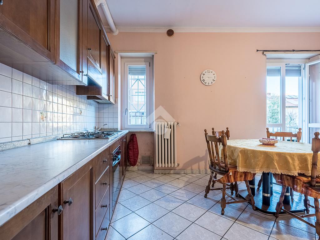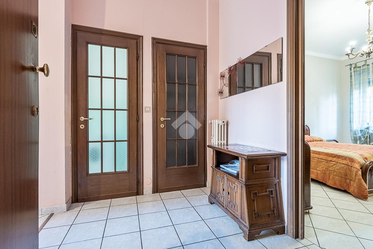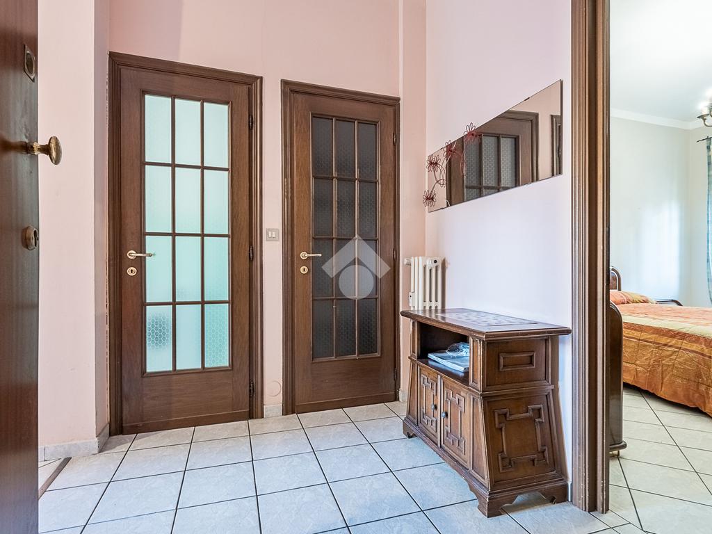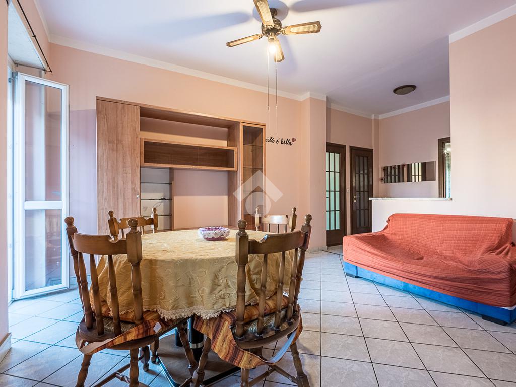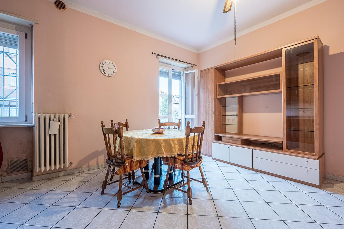 L'alloggio è composto da ingresso, salotto con cucina, camera da letto matrimoniale, bagno finestrato, ripostiglio e un balcone che affaccia sul lato cortile. L'alloggio è stato rivisto per quanto riguarda i pavimenti e gli infissi sono in pvc doppio vetro.