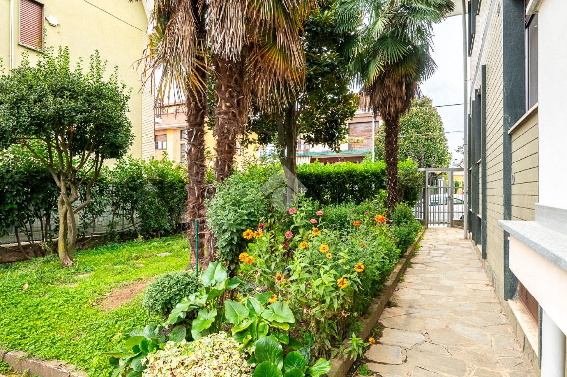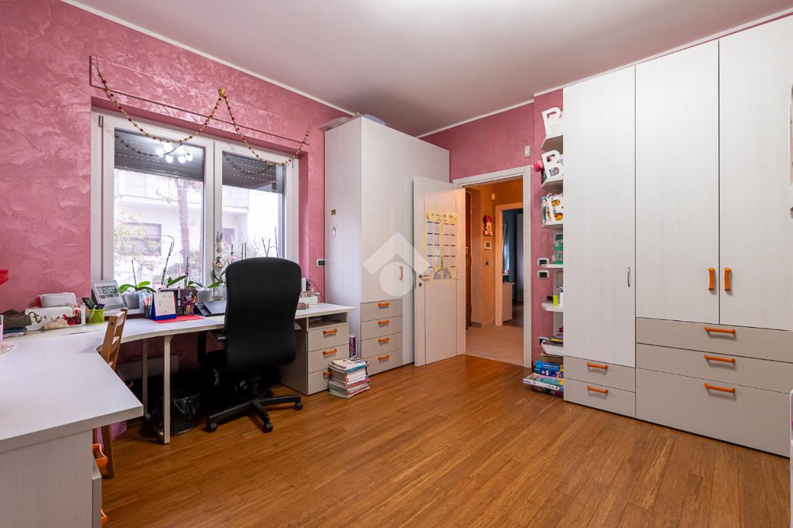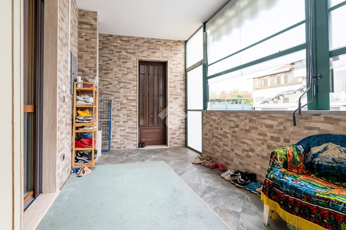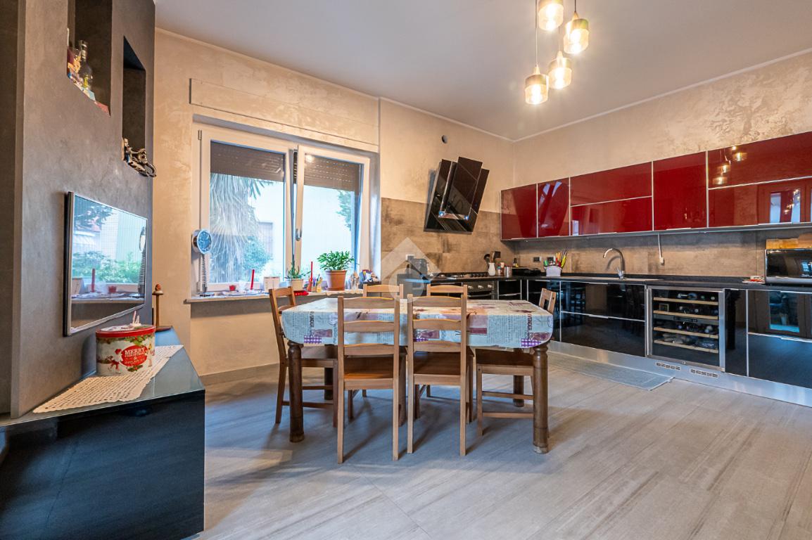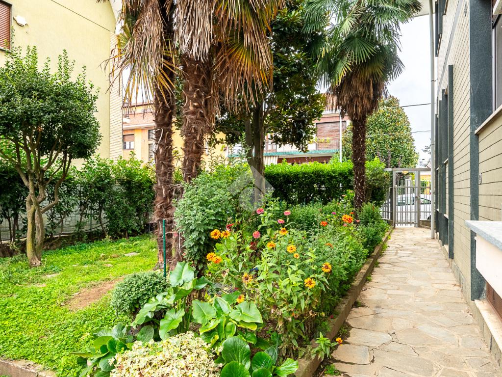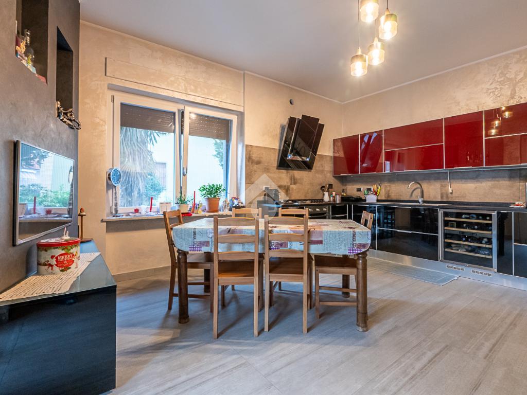 Situata al piano terra, questa abitazione di 142 mq offre un ambiente accogliente e funzionale. L'immobile si compone di quattro locali, tra cui tre camere da letto, due bagni finestrati e salotto con angolo cottura. Gli spazi esterni includono un terrazzo dotato di tende invernali con accesso su giardino e cortile ad uso comune.